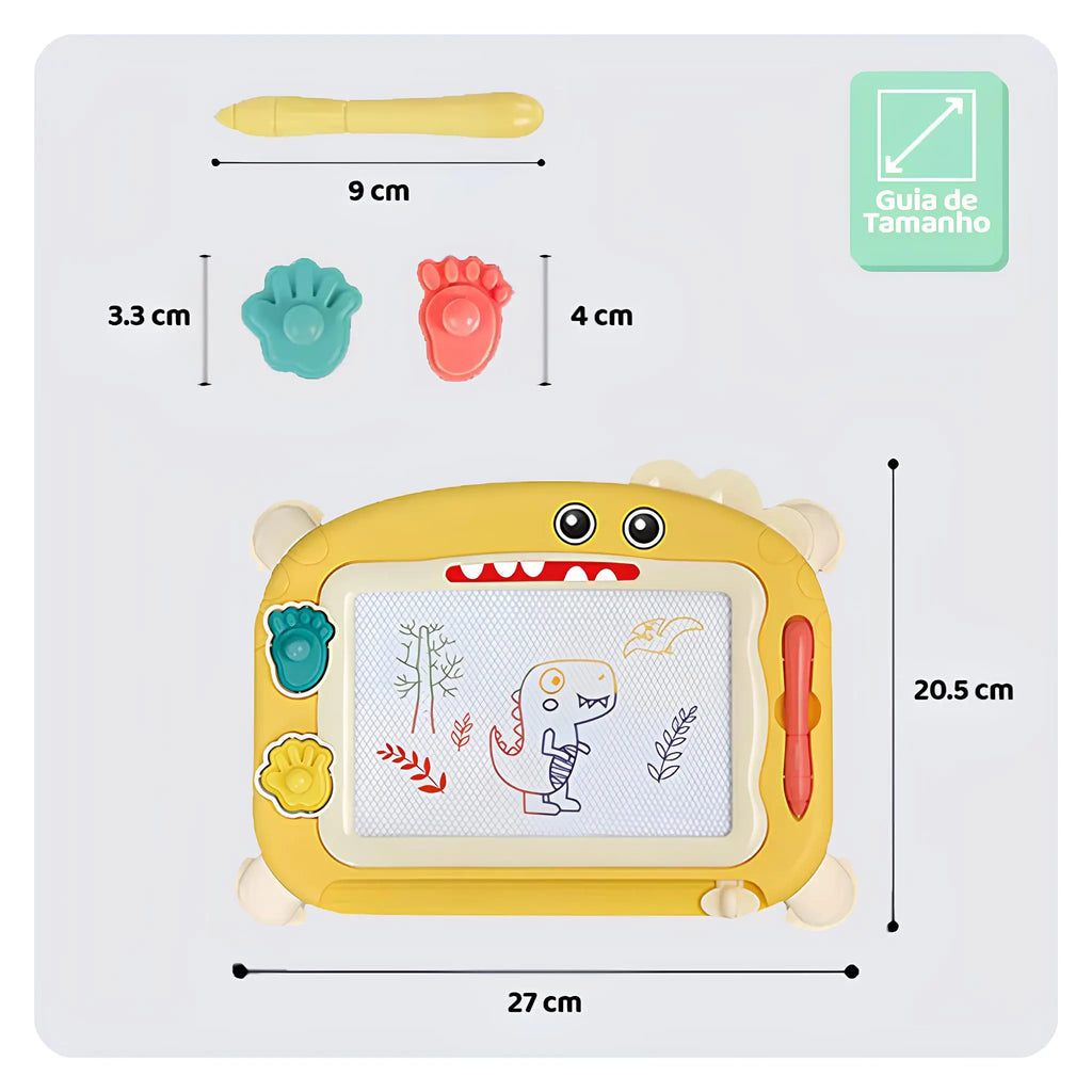 Com uma tela magnética colorida e apagador deslizante, as crianças podem desenhar e apagar quantas vezes quiserem. E o melhor: sem precisar de papel, tinta ou caneta!